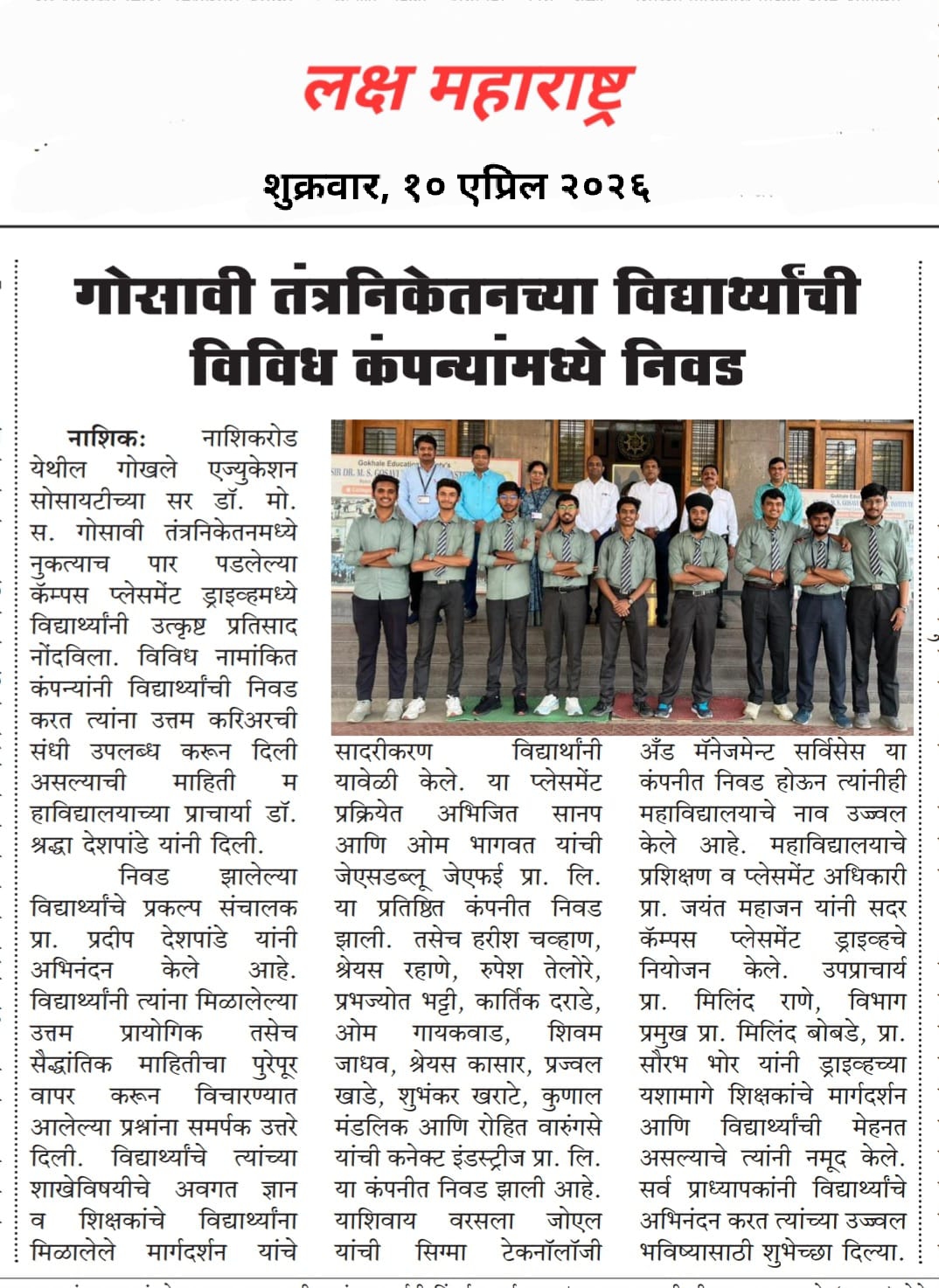 Sir Dr. M. S. Gosavi Polytechnic Institute is the Nashik’s Best College having campus in the heart of the city. On Nashik Road, accessible from all the parts of the Nashik. The college has a lush green surrounding which provides conducive environment for students to grow not only as good Engineers but as World Class citizens too.